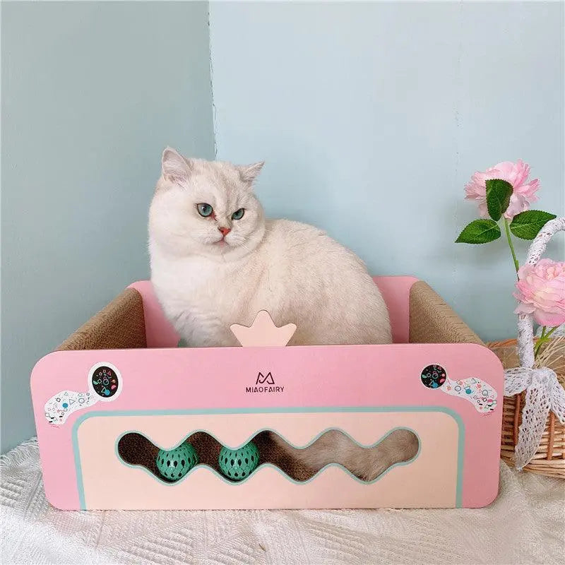 Introducing the Crown Cat Scratch Board with Ball - the ultimate toy fit for your feline royalty! This exquisite scratcher is designed to keep your regal companion entertained and their majestic claws in check.